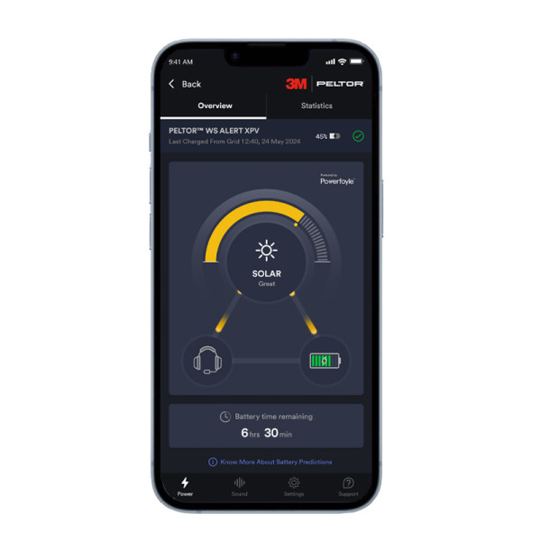 Eigenschaften: Das solarbetriebene Headset 3M™ PELTOR™ WS™ ALERT™ XPV ist ein Headset mit Bluetooth® MultiPoint und geräuschunterdrückendem Elektret-Mikrofon, dass sich per Fotovoltaik selbst auflädt. Einfaches Einrichtung und Anpassung bequem via einer iOS- und Android-kompatiblen mobilen App. Besitzt eine Multifunktionstaste (wählen Sie zwischen vordefinierten Funktionen), WAP (Work Audio Profiles), Musik- und Pod-Modus und uvm.