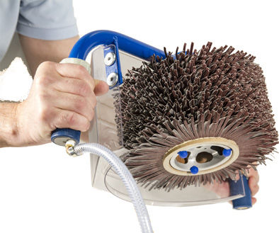 Luftgetriebene Zweihandmaschine mit LOCK-IT Spannsystem für Fladder-Schleifzylinder.