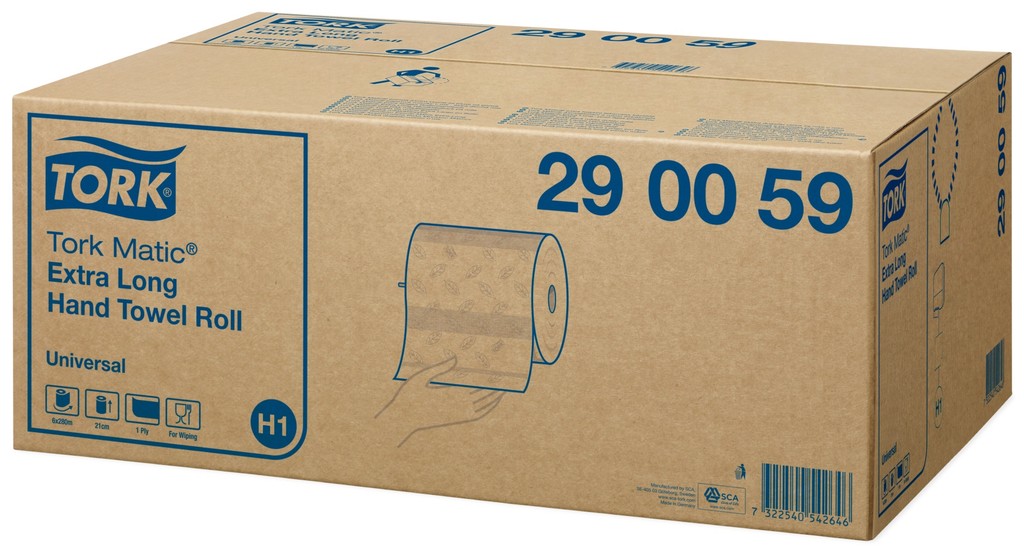 Spezifikationen: Lagen: 1, Rollenlänge: 280 m, Farbe: Weiss, Qualität: Universal, System: H1 – Rollenhandtuch System, Dazu passen: Tork Matic® (Sensor) Spender für Rollenhandtücher H1.