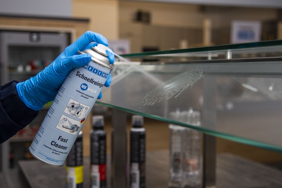 Eigenschaften: Der WEICON Schnellreiniger ist pH-neutral und materialverträglich mit NSF-Zulassung und kann auf vielen Werkstoffen z. B. Metallen, Glas, Keramik und Gummi eingesetzt werden.
