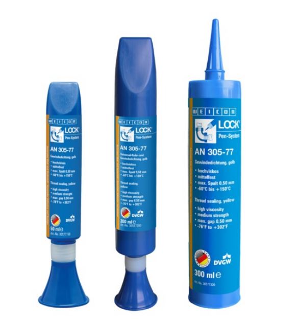 Spezifikationen: à 50ml, 200ml, 300ml. Farbe: Gelb. Für Gewindeverbindungen bis: M 80 R 3''. Endhärte: 1 - 3 Std. Temperaturbeständigkeit: -60 °C bis +150 °C.
