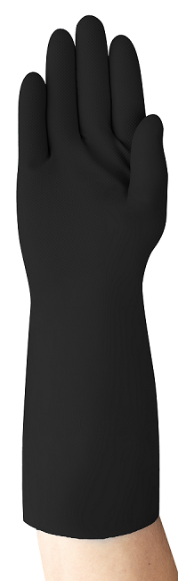 Eigenschaften: ie AlphaTec 38-003 Handschuhe bieten einen hervorragenden Schutz vor aggressiven Chemikalien, einschliesslich Aldehyden, Ketonen, Lösungsmittelestern und konzentrierten Mineralsäuren. Sie bestehen aus einer ultraweichen Butylformulierung auf Wasserbasis, die maximalen Tragekomfort, hohe Flexibilität und Fingerfertigkeit gewährleistet. Das ergonomische Design erleichtert das An- und Ausziehen und schützt Hände und Unterarme zuverlässig. Das erhöhte Rautenmuster sorgt für sicheren Griff bei Nässe oder Trockenheit.