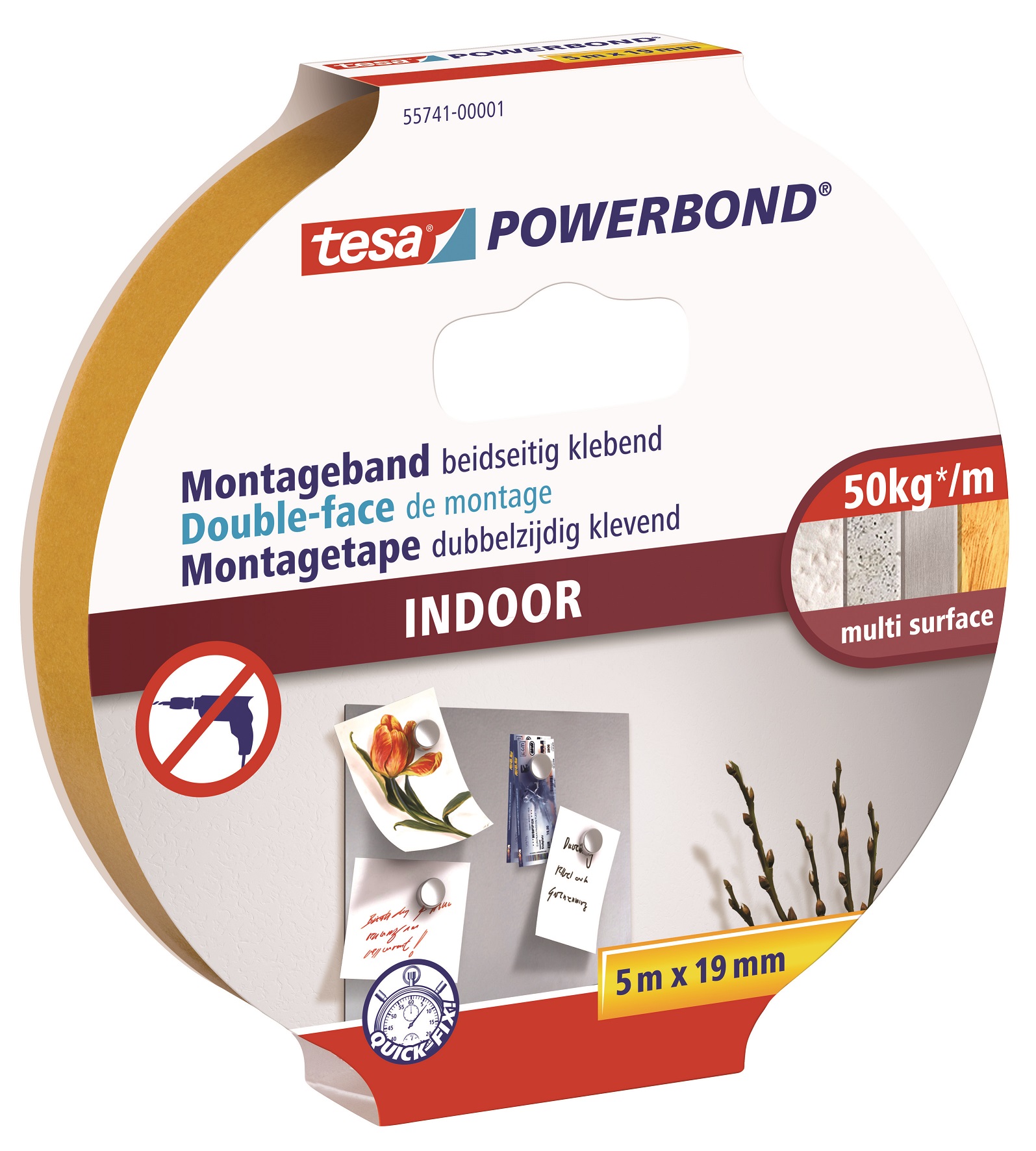 Eigenschaften: tesa 5574 Powerbond Indoor ist extra stark klebend. Doppelseitig. Passt sich Unebenheiten an und hält bis zu 5kg pro 10cm Montageband